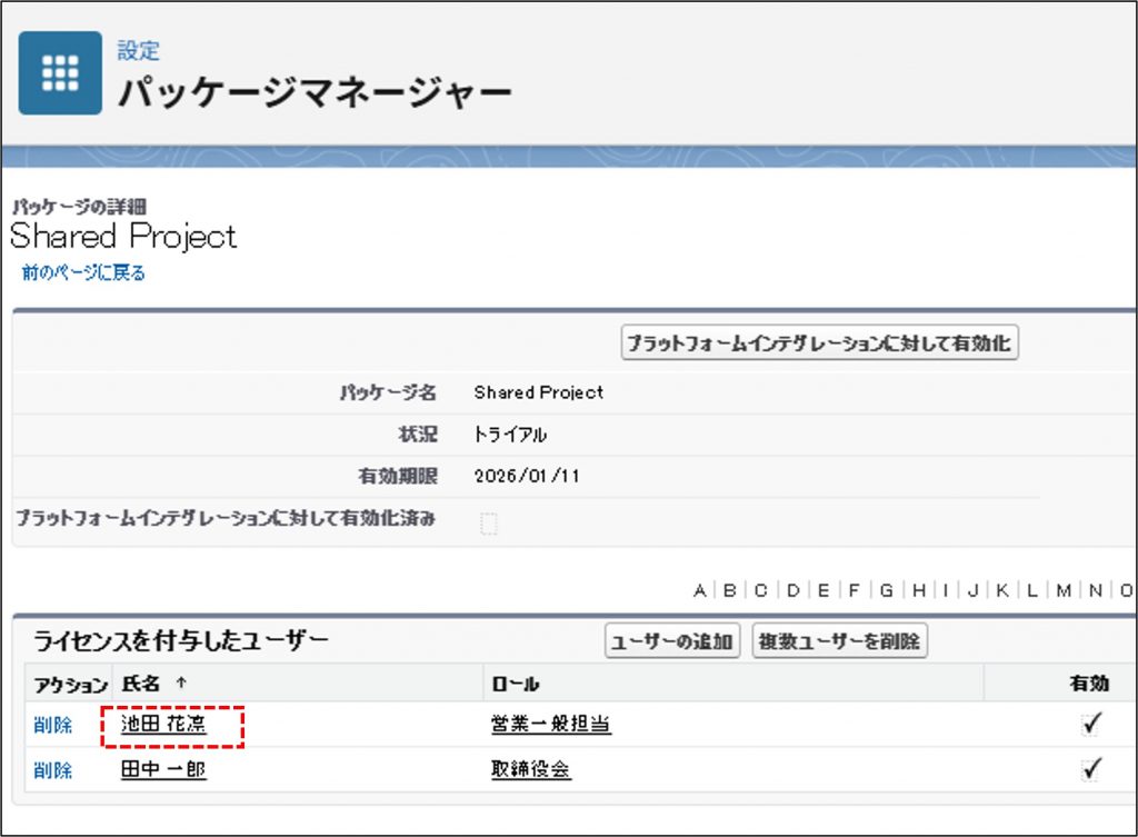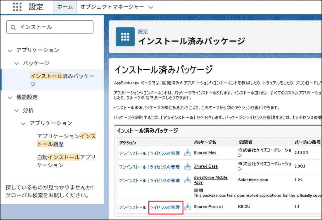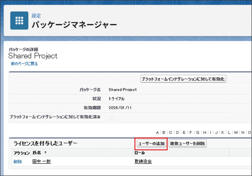 Shared Projectのインストールが完了した後は、アプリを利用するためにライセンスを割り当てる必要がございます。