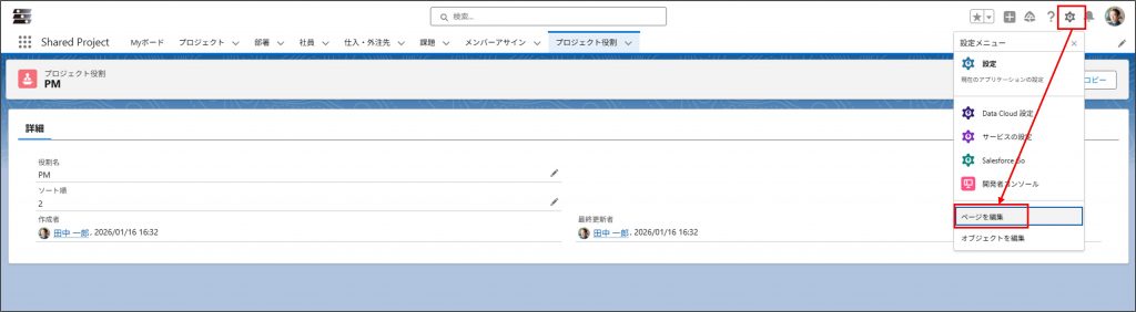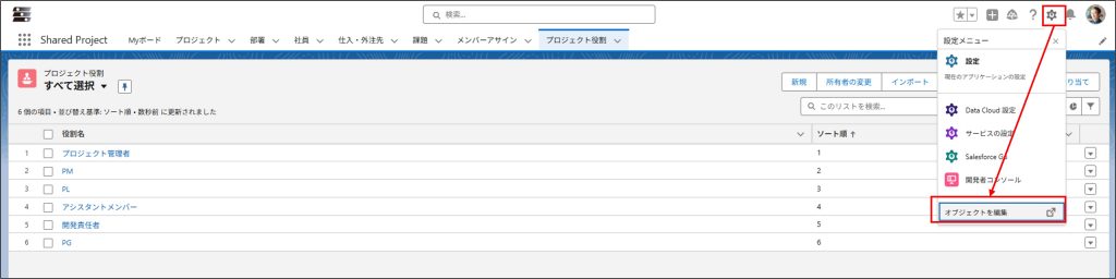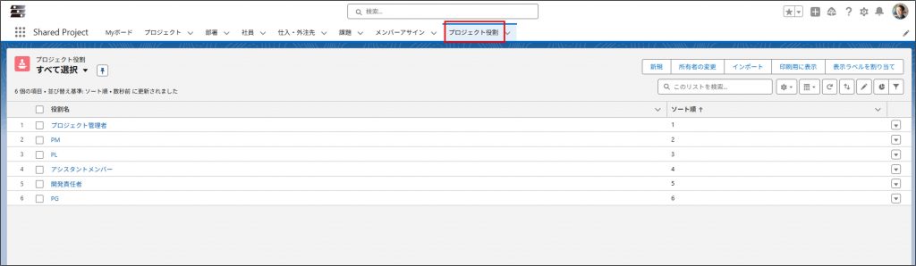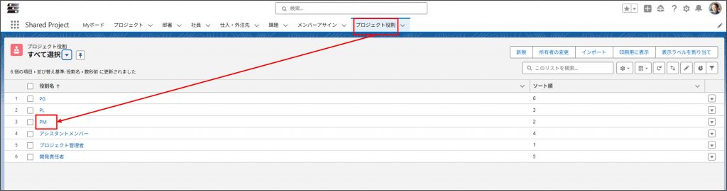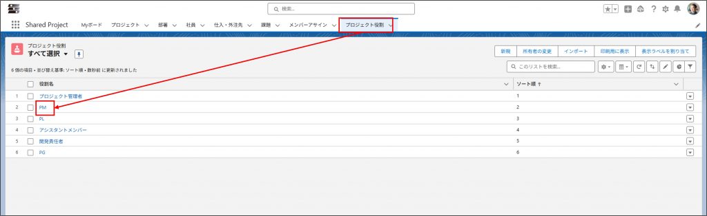 - 4.1.2.2 ②Shared Projectの「プロジェクト役割」タブをクリックし、任意の役割名をクリックします。