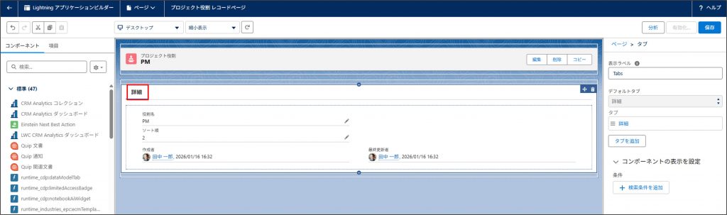 - 4.1.2.7 ⑦画面右側にある「関連」タブをドラッグアンドドロップで「詳細」タブの順番を入れ替えます。