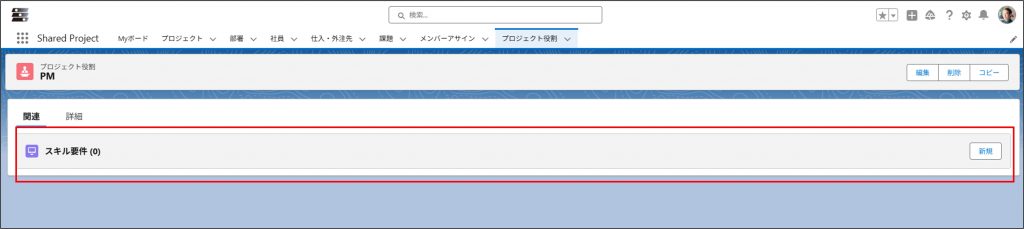 | 1 | ページレイアウトにスキル要件の関連リストを設定する |